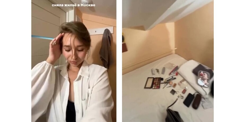 Девушка арендовала апартаменты у Кремля площадью в 2 квадратных метра. Судя по кадрам, которые разлетелись по Сети, внутри комнаты нет окон, но есть кровать, телевизор, тумбочка и картина. Стоимость суток проживания – 2 500 рублей.